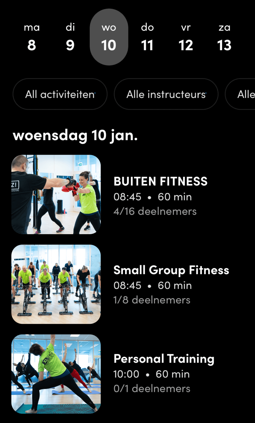 Groepsfitness, personal training en leefstijlcoaching op verschillende locaties.